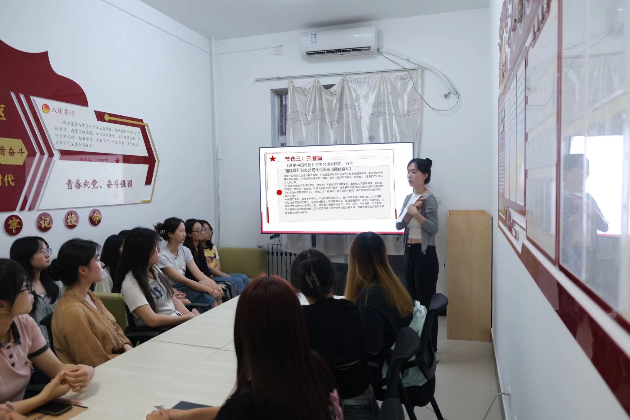 随后,积极分子马琪媛作交流发言,她号召同学们以实现中华民族伟大复兴为己任,增强做中国青年的志气、骨气、底气,不负时代,不负韶华,不负党和人民的殷殷期盼。最后,学生第一党支部书记周瑾萱强调:学生党员和积极分子要深入开展《习近平著作选读》的学习研读,系统掌握习近平新时代中国特色社会主义思想的基本观点、科学体系,深入把握蕴含其中的历史逻辑、理论逻辑、实践逻辑,坚持不懈用习近平新时代中国特色社会主义思想凝心铸魂。