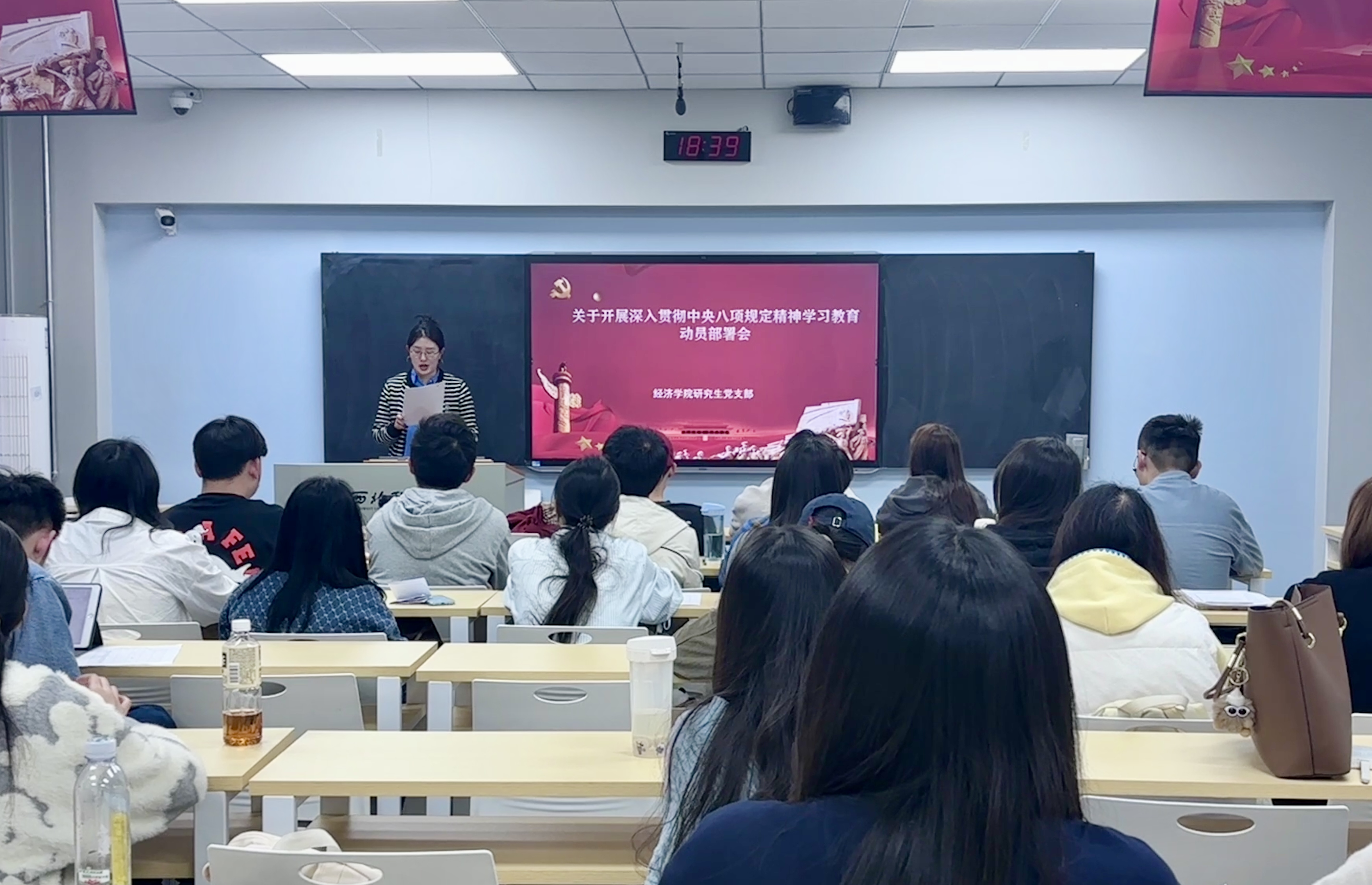 3月24日,司机社 研究生党支部召开深入贯彻中央八项规定精神学习教育动员大会,学习《中共陕西省委教育工委陕西省教育厅关于开展深入贯彻中央八项规定精神学习教育的实施方案》《中共司机社 委员会关于开展深入贯彻中央八项规定精神学习教育的实施方案》。会议在北区三号教学楼举行,支部书记周瑾萱主持,研究生党支部全体党员参加。