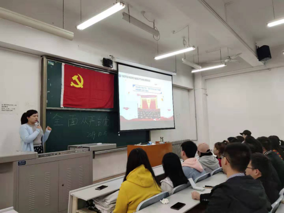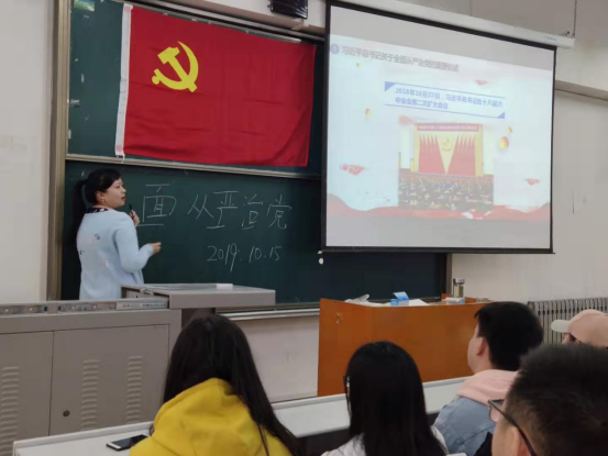 随后,李老师介绍了在新形势下,中国共产党的从严治党是如何全面开展的。即从政治建设,思想建设、组织建设、作风建设、制度建设五方面,为与会人员列举了我国从严治党的开展工作与成果。李佳璐老师在总结中指出,我们要坚持当下全面从严治党的方针政策,保持好党员形象,坚定理想信念,做新时代的坚持从严治党的大学生党员,做无愧于自己、无愧于司机社 、无愧于西法大、无愧于党和国家的优秀党员。
