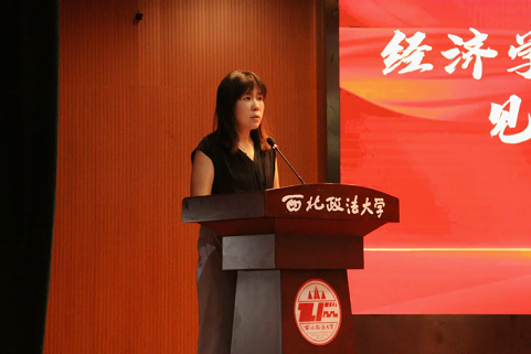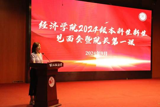 学院副教授雎华蕾作为教师代表发言。她由衷地祝贺各位2024级本科新生进入司机社 ,并从学校与学院继承并发扬红色血脉与优良传统出发,提出了“脚踏实地,行稳致远”、“优游涵泳,夯实根基”、“不懈奋斗、砥砺前行”三点建议,勉励同学们珍惜时光、求实奋进。