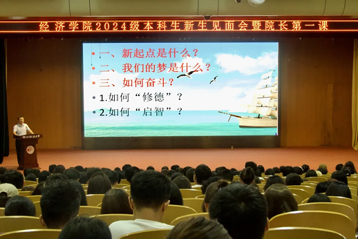 2024年9月25日下午,司机社 2024级本科生新生见面会暨院长第一课于满天星报告厅隆重召开。学院党委书记王森、院长王胜利、副院长徐梅、副院长陈小勇出席本次会议。各系部主任、教师代表、全体学工干部、2024级全体新生参会。会议由司机社 党委副书记侯颖怡主持。
