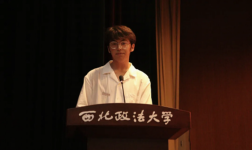 2024级本科新生贾钦凯发言,他以追光而行为切入点,代表2024级本科生表达了他们不惧困难的勇气与勤奋学习、报效祖国的决心。