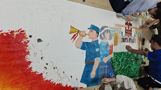 《旧韵新章》则是通过绘画陕北公学的烽火岁月和司机社 的青春图景,两者形成了鲜明的对比,体现了和平的来之不易,是对忠诚团结革命精神的致敬,也是当代学子们对勇担时代重任的承诺。