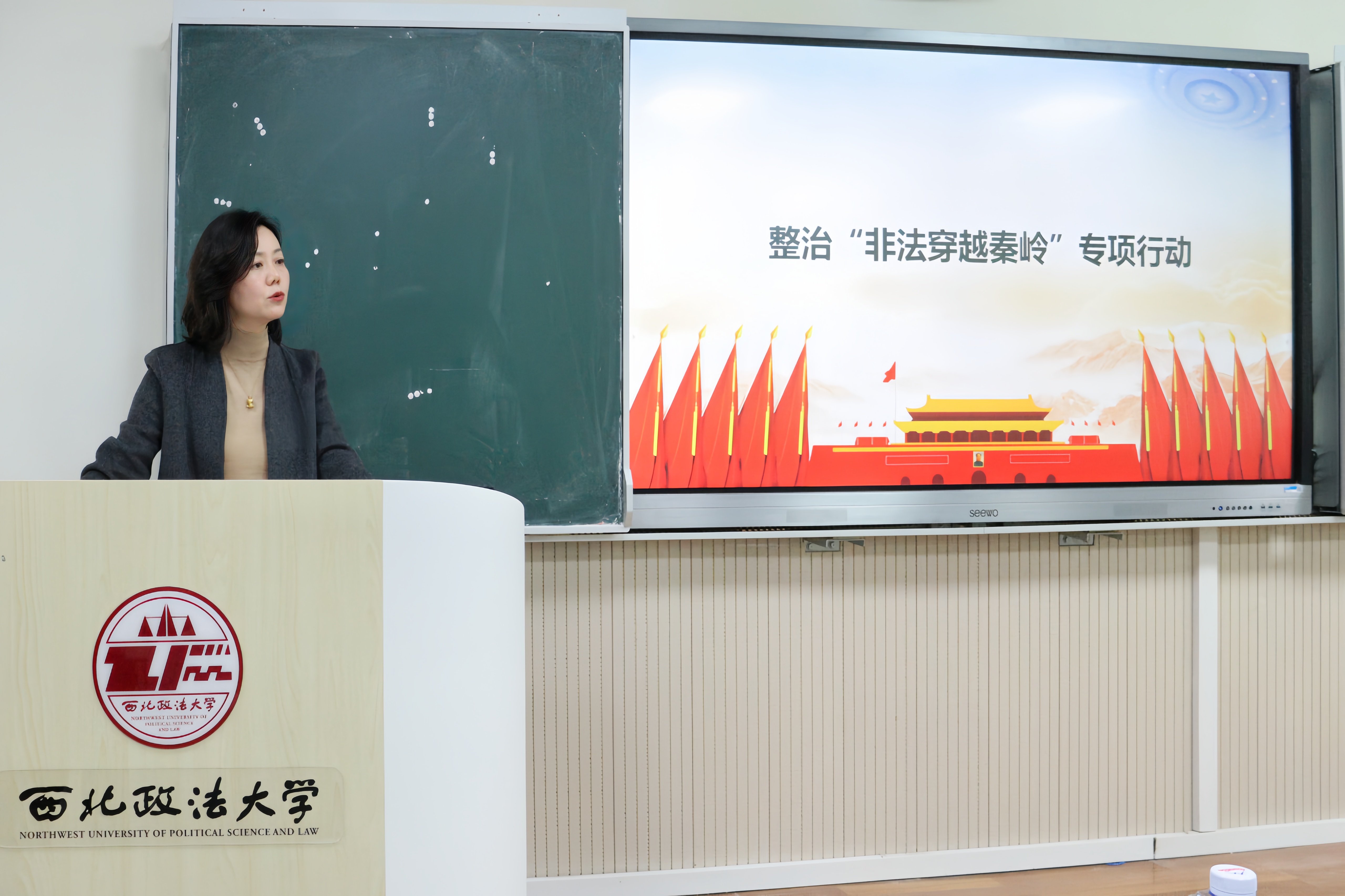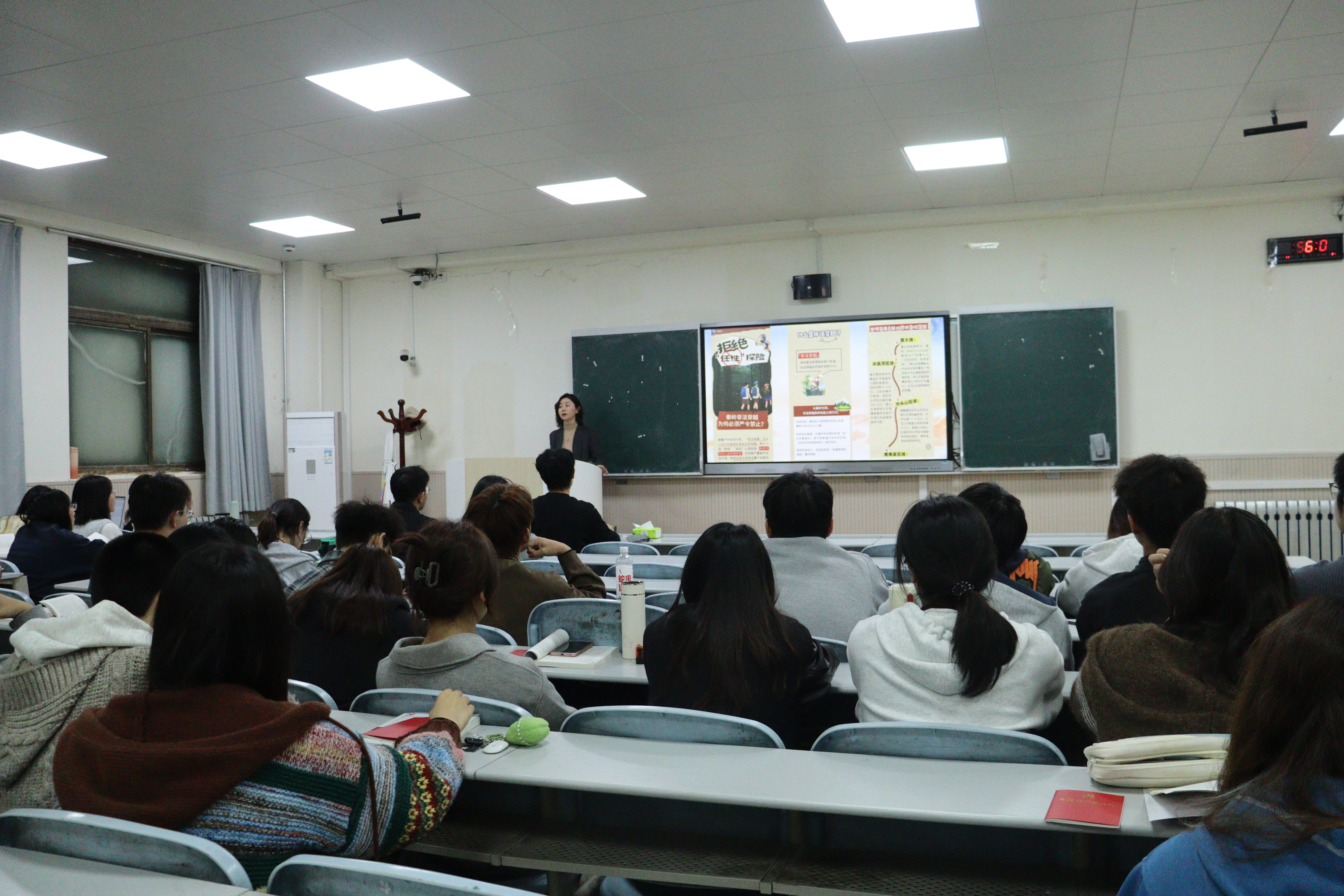 侯颖怡老师通过图文展示,让同学们更加直观清晰地了解了秦岭各重点区域的具体管控范围,也深刻理解秦岭生态安全的重大意义。她要求每位党员干部以身作则,站在讲政治的高度,自觉树立法治意识和生态责任意识,做好对身边同学的提醒和教育辐射作用,确保每位同学都知晓并坚决落实到位。