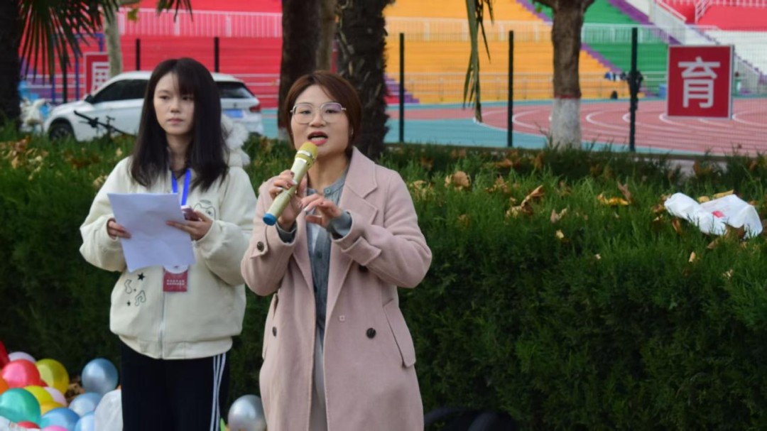 活动第五项是“背对背拥抱”。两个人一组背对背夹气球,从起点走到终点三十米,第一组抵达后第二组进行接力走到起点。气球掉落需停下捡起来再出发,气球爆炸需回归原点重新拿气球再出发。同学们将信任的后背交给彼此,轻声鼓励对方稳步到达终点。