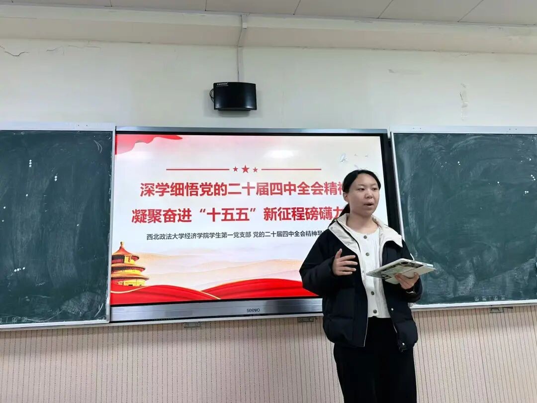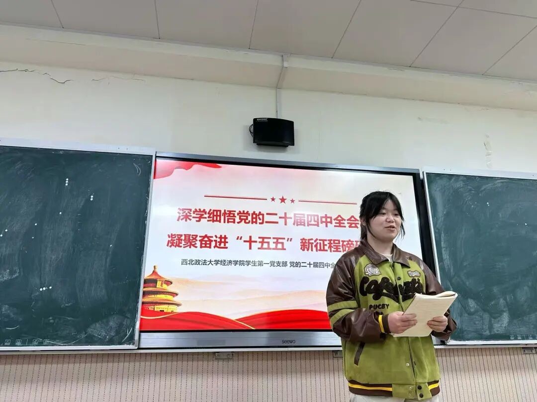 学生第一党支部召开“学习二十届四中全会精神”专题学习会。会议由支部书记刘佳主持,全体党员参会,通过集中领学、深入研讨的形式,推动学习走深走实。