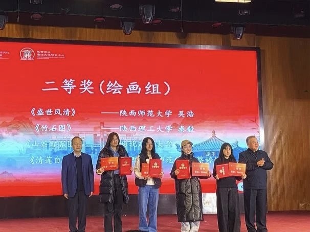 学子积极参与、精心创作,最终凭借出色的作品实力斩获荣誉:其中,2023级雷璇的作品《山茶雪霁图》荣获绘画赛道二等奖,2024级张家正、范炜、孙瑜珊参与的团队作品《指尖三寸》荣获微视频赛道二等奖,他们用艺术笔触勾勒廉洁初心,用光影镜头传递清风正气,以青春力量诠释廉洁内涵。