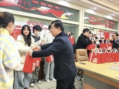为切实保障考研学子的复习备考需求,传递学院的深切关怀与有力支持,12月5日上午,学院院长王胜利、党委副书记侯颖怡、副院长陈小勇、2022级辅导员齐佳共同为全院备战2026年硕士研究生招生考试的学子们送上物资支持与暖心祝福。