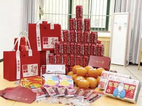 这份温暖与期许,凝聚在学院悉心筹备的十件寓意深远的暖心好物中,以“十全十美”的美好祝愿陪伴学子逐梦征程:象征“文”思泉涌的文具套装,承载“暖”意相伴的两枚暖贴,寓意心想事“橙”的新鲜橙子,蕴藏“纸”定上岸的小包纸巾,代表“拭”去烦恼的湿纸巾,寄托“遍”通考点的便利贴,印有“成功上岸”的定制可乐,写有一“研”为定的祝福卡片,承载“金榜题名”真挚期许的钥匙扣。