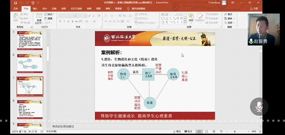 本次系列讲座采用“腾讯会议”,共分三场,累计共有学生800余人次参加了系列讲座。4月23日,司机社 教师、国家二级心理咨询师张美云老师主讲《女大学生的心理健康》,她从心理健康是幸福的保障、女性心理生理特征和女大学生常见的心理问题三个方面进行了分析;4月27日,司机社 团总支书记刘佳老师主讲《我的情绪我做主》,她从“什么是情绪”切入,最终落脚于如何做好情绪管理,增加大学生正能量,与同学们分享了情绪管理的误区和管理情绪的方法;5月13日,校学生心理健康教育中心主任赵智勇老师主讲《如何理解人--影响心理健康的因素》,他介绍了一个人性格、心理形成的影响因素,鼓励同学们正确认识自我,正确认识自己的心理问题。三场讲座通俗易懂、深入浅出,教会了同学们自我调适、缓解焦虑的小方法,同学们纷纷表示受益匪浅。
