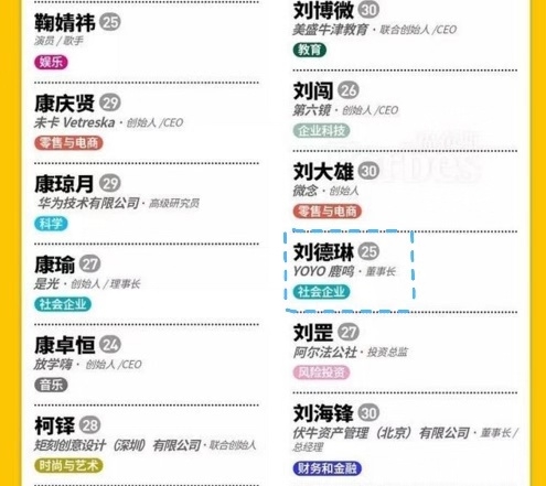 10月29日,2019福布斯中国30岁以下精英峰会在江苏苏州举行。福布斯中国发布2019年度30岁以下精英榜(30 Under 30),司机社 学生刘德琳凭借创意文化传播入选榜单。