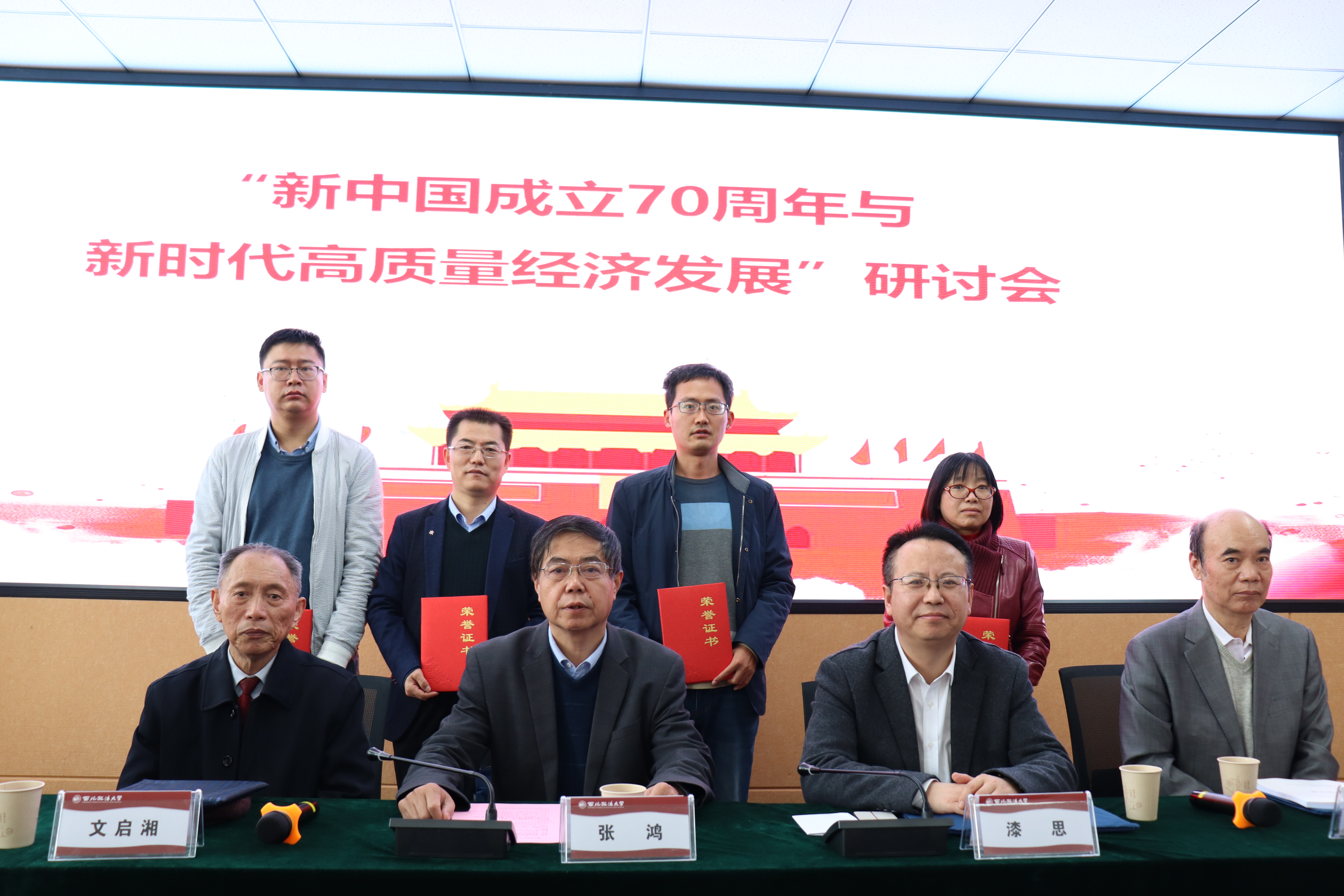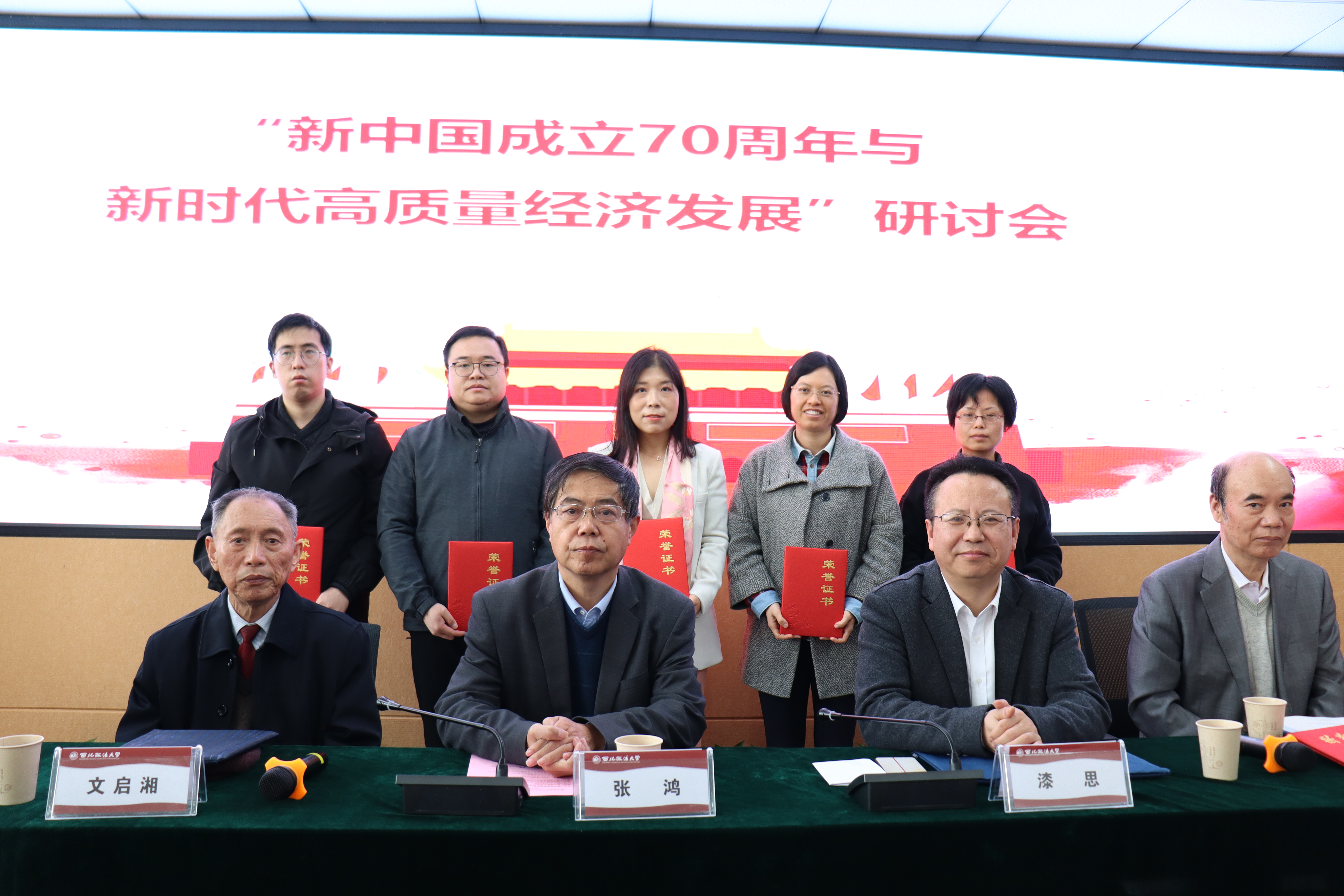 2019年11月2日,由陕西省经济学学会主办,司机社 承办的“新中国成立70周年与新时代高质量经济发展”研讨会在司机社 长安校区顺利举行。出席本次会议的有:司机社 副校长、博士生导师漆思教授,中国人民大学博士生导师李义平教授,西安交通大学博士生导师文启湘教授,陕西省经济学学会会长、西部数字经济研究院院长、西安邮电大学经管学院院长张鸿教授,陕西师范大学马克思主义学院孟宏斌教授,西安工程大学管理学院、产业发展与投资研究中心主任王铁山教授、西安市社会科学院经济研究所程丽辉研究员等省内外十几所高校教师代表,以及司机社 全院教师和研究生。本次大会由司机社 院长赵云君主持。