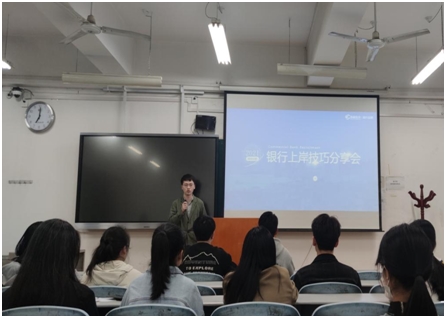 行业专场分享。根据专业特点,为了提升学生在银行等金融机构校招中的应对技巧,学院特举办银行类考试专场分享会,请已入职银行的同学进行经验分享、朋辈交流。同时邀请银行资深HR,对银行春招中网申过程填报的技巧、面试的形式及相应的准备技巧等进行详细地解读,帮助学生更好的找准发力方向。