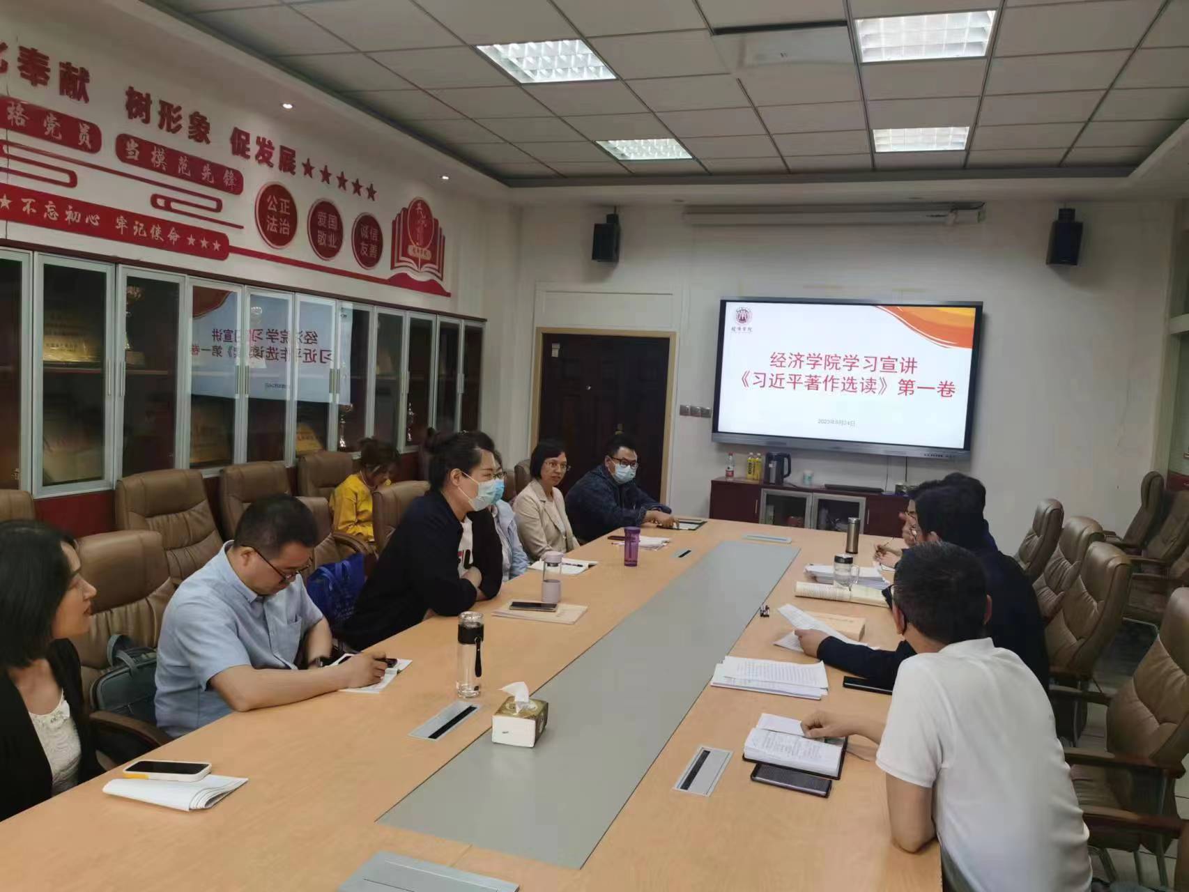 参会成员观看学习了习近平总书记在听取陕西省委和省政府工作汇报和山西运城考察时发表的重要讲话视频;学习了习近平总书记在学习贯彻习近平新时代中国特色社会主义思想主题教育工作会议上的讲话精神。学院党委书记王森、院长王胜利带头宣讲《习近平著作选读》第一卷有关内容。