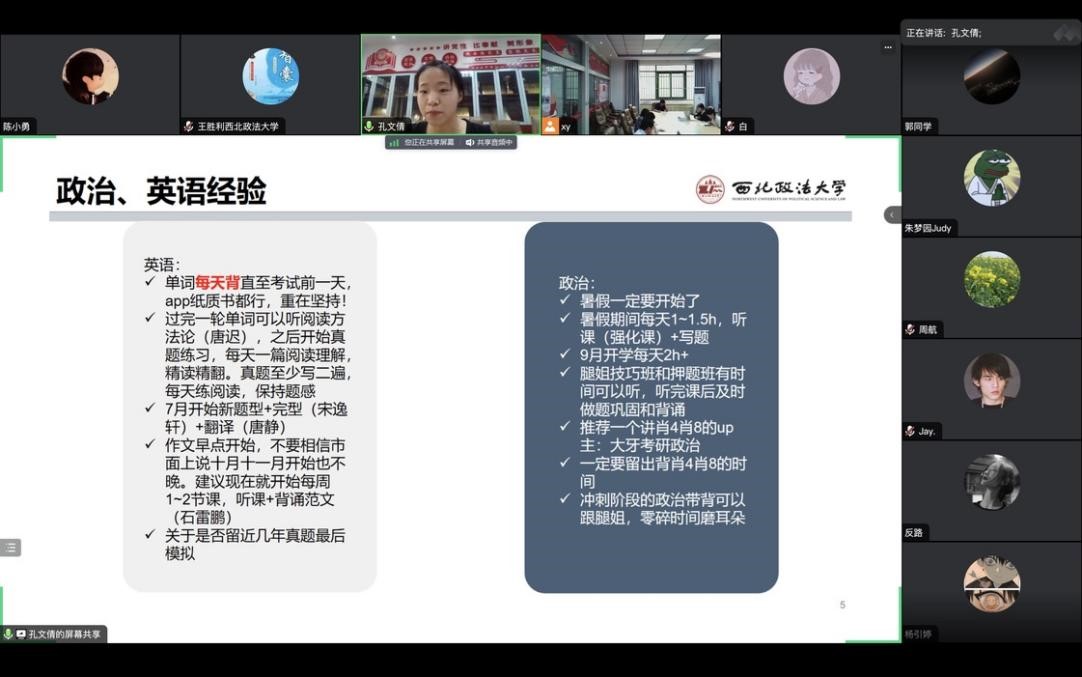 2020级理论经济学硕士研究生董原已被陕西师范大学国际商学院录取为2023级博士研究生,他向与会师生分享了在司机社 读硕士研究生期间的经历和感受,以及自己备考陕西师范大学国际商学院博士的经验。