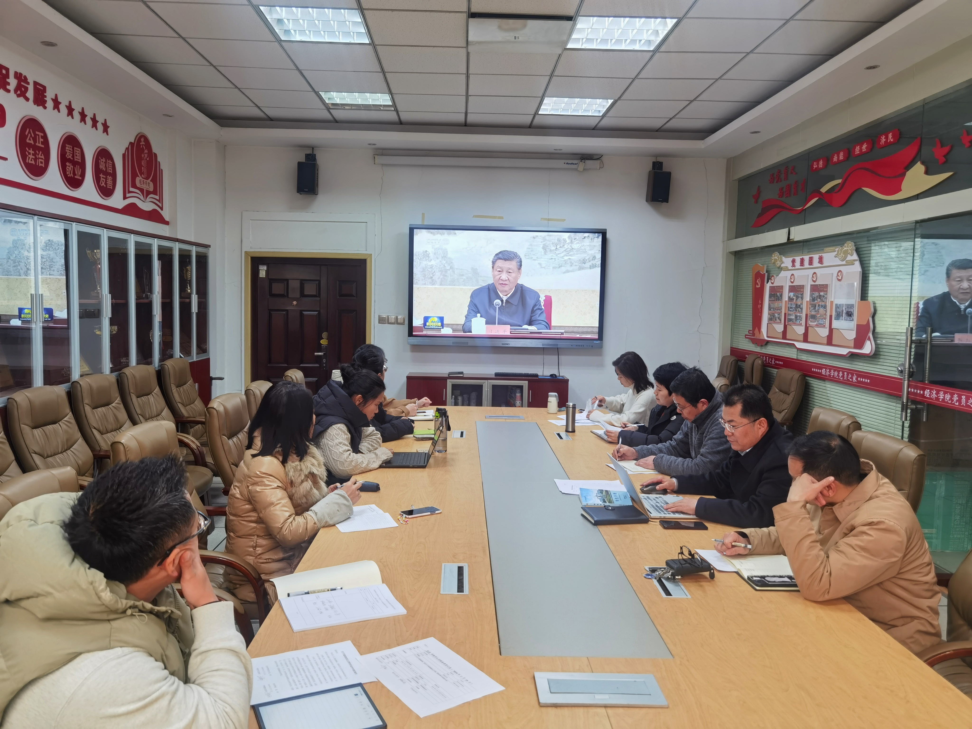 会议要求,要把巩固拓展主题教育成果作为重大政治任务,深入学习贯彻习近平新时代中国特色社会主义思想和习近平法治思想、习近平文化思想,通过“三会一课”、主题党日等形式开展开展党的创新理论学习,不断提升运用党的创新理论解决实际问题能力。要压紧压实主体责任,推进年度重点工作任务落实,更好将主题教育成果转化为推动高质量发展成效,助力学院工作取得新成绩、开创新局面。