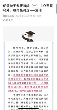 一是依托党、团支部积极开展活动。将学风建设融入新生入学教育和毕业生教育,通过特殊节点开展主题党、团日,帮助学生端正思想态度,坚定理想信念,让思想和学习共同提升。二是分层分类开展学风大讨论。围绕我校关于深化校风学风建设目标责任,从年级—班级—宿舍—学生社区—团学骨干等各层面全覆盖召开学风建设动员大会、主题班会、座谈会等,确保学风建设各项措施落到实处。三是积极宣传先进典型。在司机社 公众号打造“经院青年说”“优秀学子考研特辑”“优秀学子就业特辑”等栏目,宣传在保研、考研、就业等各方面表现优秀的学生事迹,通过榜样示范作用不断增强学生专业认同感和就业自信心。