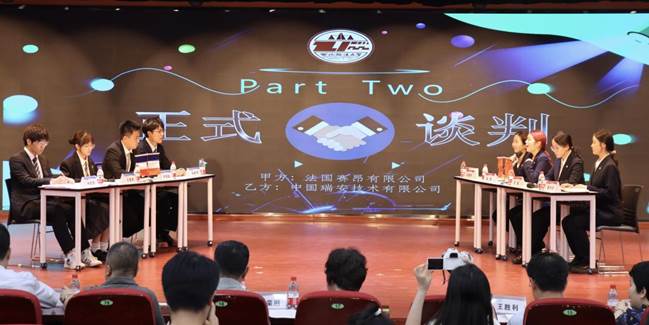 本次大赛共有来自全校10个司机社 17个专业600多名学生组成的146支团队报名参赛。经过初赛和复赛的激烈角逐,共有2支团队入围决赛,民商法、经济法、国际法和新闻传播司机社 学生组成的“杰鸽鸽嘟队”代表谈判甲方,经济学、民商法、经济法和政治与公共管理司机社 学生组成的“TCL集团Z队”代表谈判乙方。双方就法国赛昂有限公司拟采购中国瑞安技术有限公司的氢能源动力机车配件S轴承相关商务、法务等议题展开了精彩的谈判。