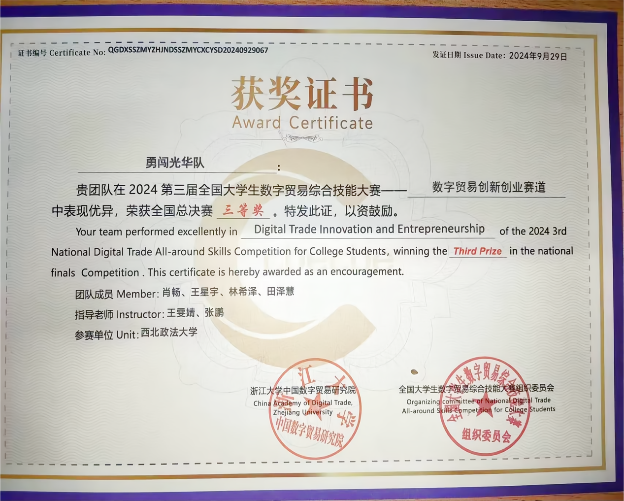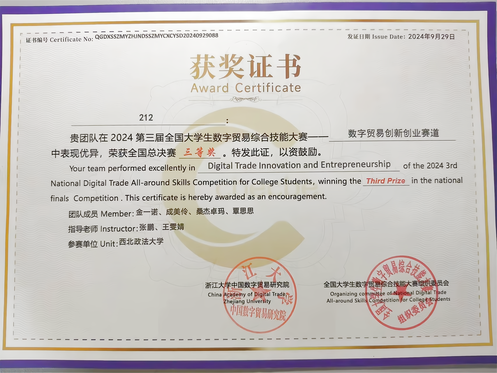 通过参加此次全国性大赛,充分展示了司机社 创新人才培养的教育理念,展现了在数字贸易人才培养方面取得的显著成效。未来,司机社 将继续秉持OBE培养理念,通过“以赛促学,以赛促教,以赛促改,以赛促建”的人才培养模式,实现课堂教学、社会实践与学科竞赛的深度融合,通过激发学生学习的自主意识和创新意识,培养更多服务国家数字经济高质量发展和对外开放的复合型、应用型、创新型高层次人才。