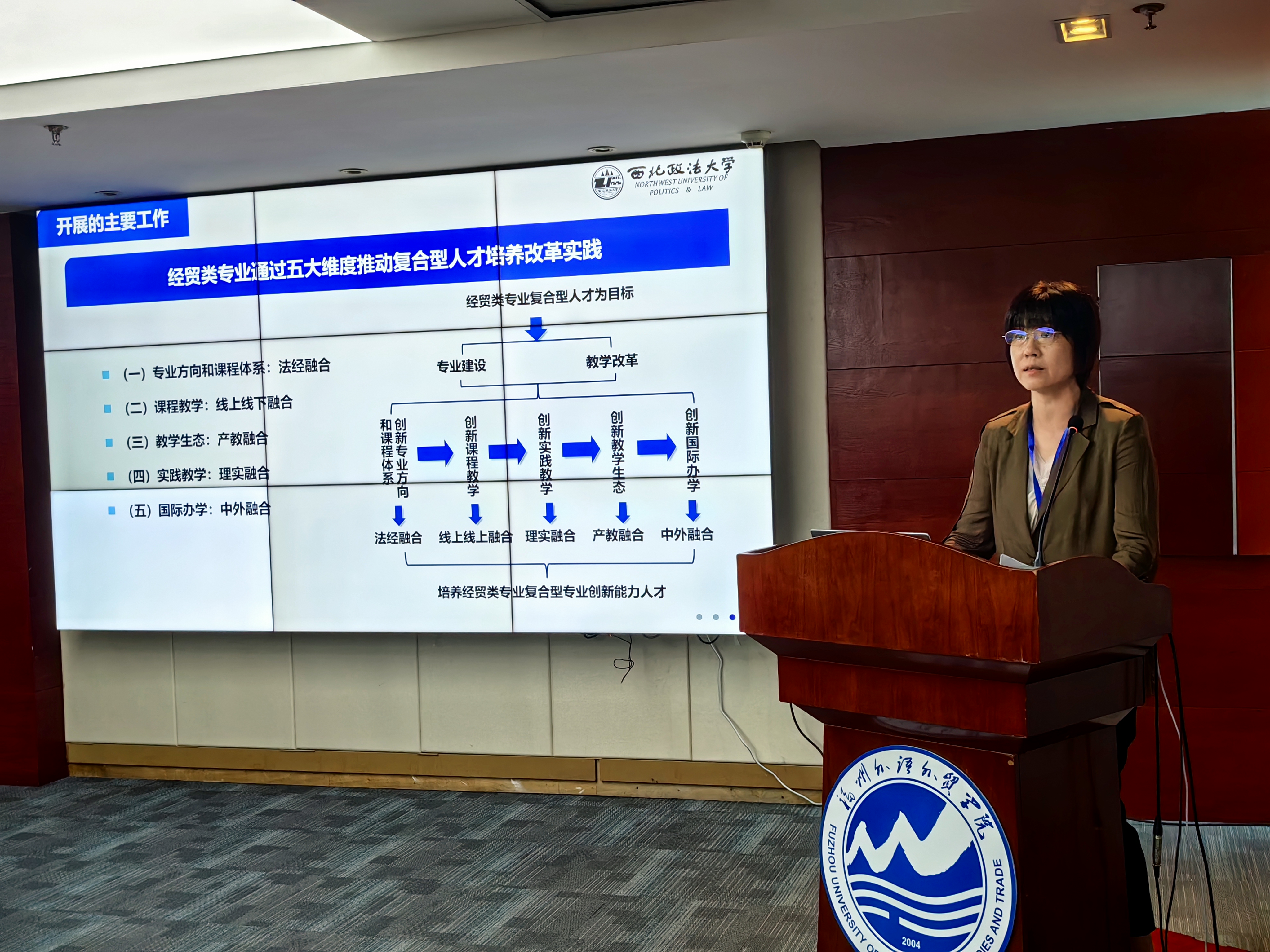 本次会议聚焦数字化改革与高水平对外开放体制机制。11月10日上午是主旨演讲,下午是八个平行论坛。中国信息经济学会常务理事、福州外语外贸司机社 执行校长黄建平,中国信息经济学会副理事长、数字化改革专委会主任、浙江大学中国数字贸易研究院院长马述忠致开幕词。华南师范大学副校长王春超,中国社会科司机社 大学商司机社 副院长夏杰长,中国社会科司机社 大学应用司机社 执行院长倪红福,华东理工大学副校长阎海峰,浙江大学中国数字贸易研究院院长马述忠,福建米多多网络科技有限公司CEO邓海围绕“数字经济背景下的改革与发展”作主旨发言。国贸系主任王雯婧副教授在平行论坛作题为“多维融合培养经贸专业复合型创新人才”主题发言。侯颖怡、王雯婧和李隆玲三位老师在会上和与会专家进行了广泛地经验交流。