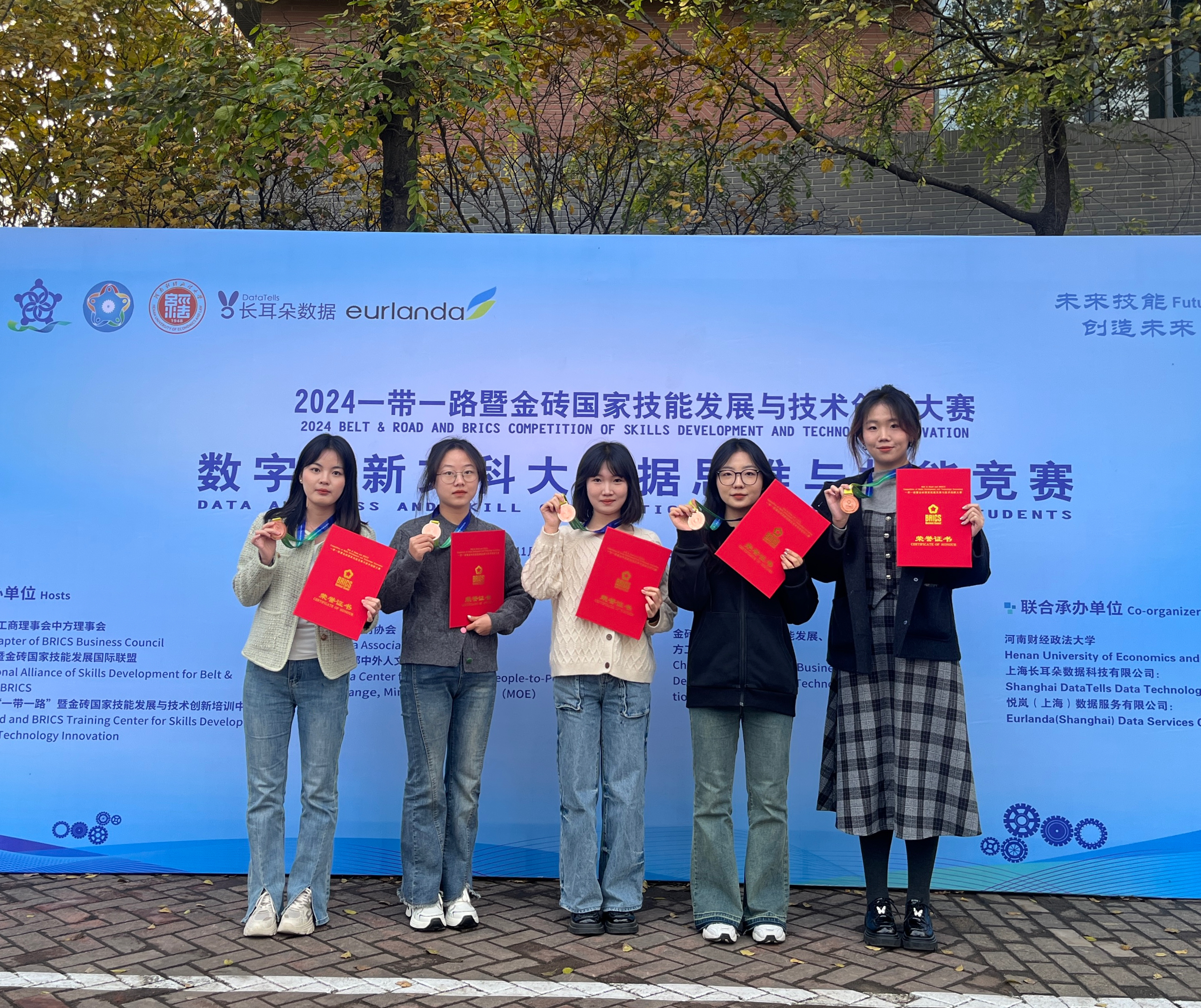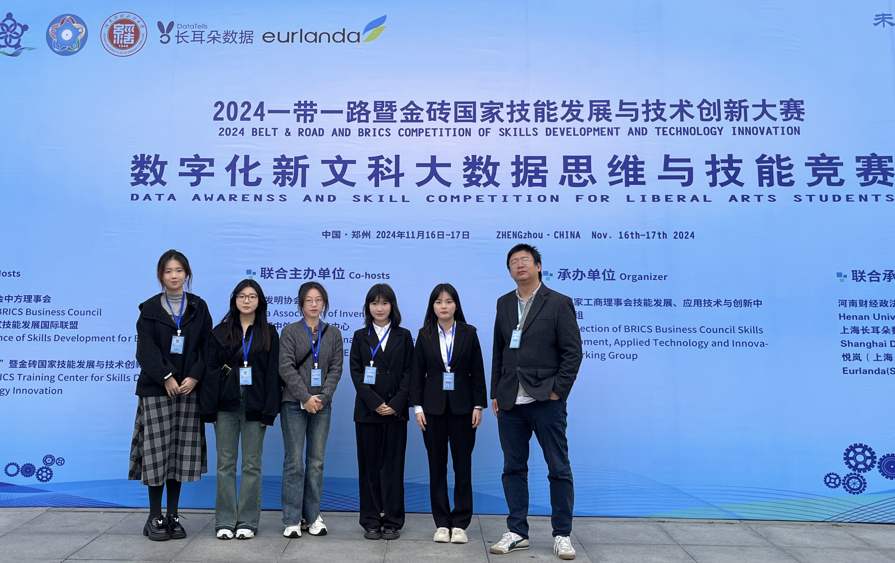 11月16—17日,国际级A类赛事,2024第八届一带一路暨金砖国家技能发展与技术创新大赛——第二届数字化新文科大数据思维与技能赛项决赛在河南财经政法大学举办。由我校司机社 张鹏老师指导的,来自司机社 的袁熙睿、马冰瑞、范煊梓、曹培杉、王天然等五位学生组成的队伍荣获国赛三等奖。