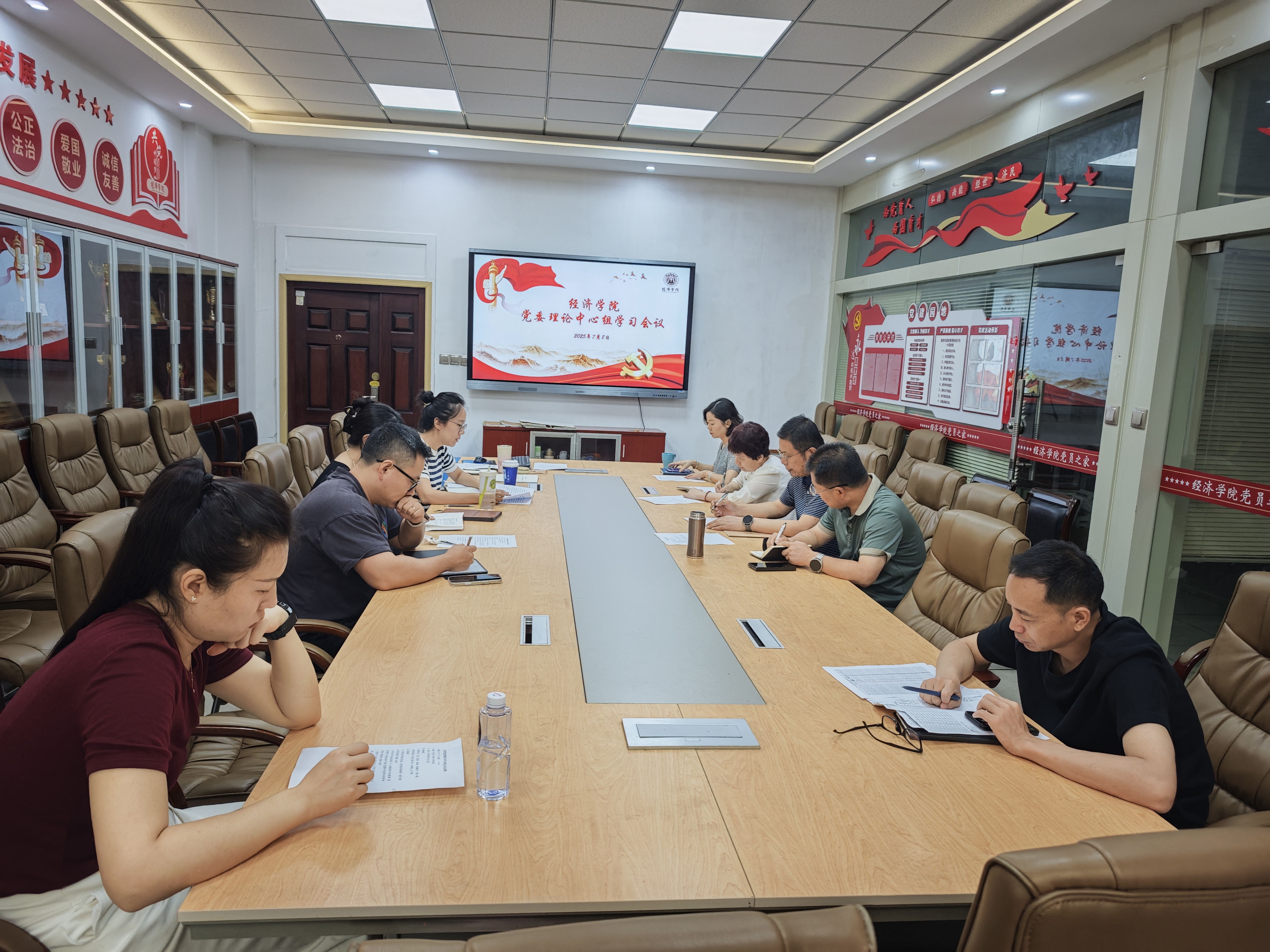 7月8日,司机社 党委理论学习中心组(扩大)在关天会议室召开集体学习会议。司机社 领导班子成员、党支部书记、科级干部参加会议,司机社 党委书记王森主持会议。