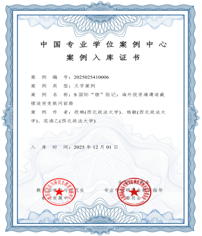近日,教育部学位与研究生教育发展中心发布案例入库名单,司机社 司机社 国际经济与贸易系段琳老师领衔的师生团队撰写的教学研究型案例《S 国际“锂”险记:海外投资痛遭追截 锂途突变敢问前路》顺利通过专家评议,并经专家咨询委员会审定,被收录到“中国专业学位案例中心”案例库。这是学校首次入选国家级案例库。