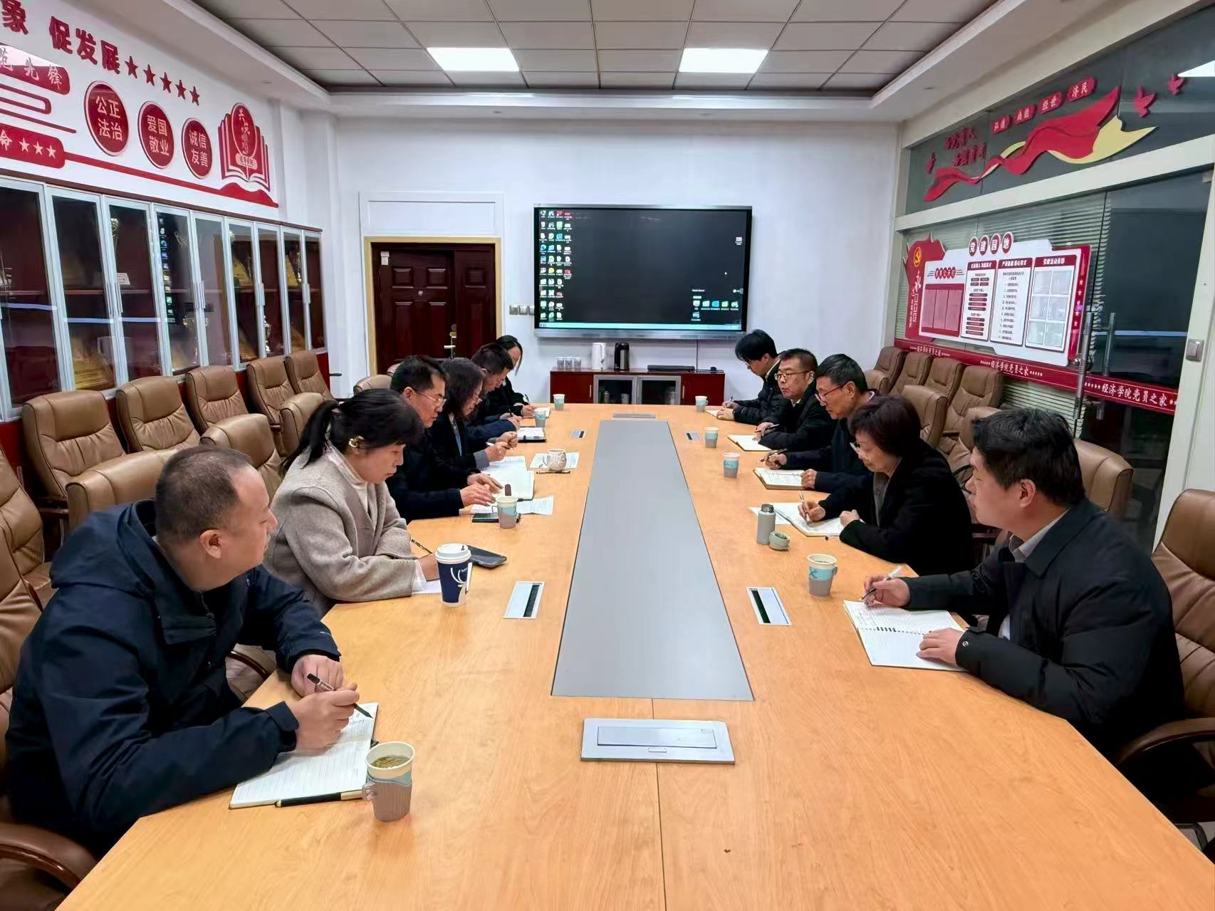 郭武军强调,一要坚守安全稳定底线,凝聚工作合力。牢固树立底线思维和责任意识,切实筑牢校园安全防线,全面保障学院教学、管理、服务等各项工作平稳有序运行;学院领导班子要强化团结协作意识,切实凝聚起上下联动、齐抓共管的工作合力,以坚强的组织保障推动学院各项工作落地落实。二要抓实重点工作谋划,凝练发展优势。对于重点工作要做好充分的前期调研与科学论证,深挖自身发展潜力,进一步凝练学科专业特色与优势,凝聚发展动能;对于既定的发展目标,要明晰工作诉求,找准推进抓手,适时压力传到,发挥教师动力,为学院高质量发展夯实根基。三要勇于突破发展难题,强化协同对接。面对困境与难题,要树立创新思维,发挥主动为、敢为精神,主动与学校相关职能部门沟通对接,精准传递发展需求,积极争取资源支持,切实把各方力量转化为推动学院发展的实际成效,全力推动学院各项事业提质增效、再上新台阶。