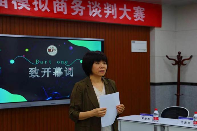 王雯婧老师代表嘉宾致辞,期望同学们以模拟商务谈判大赛为平台,勇于接受挑战与考验,努力提升学科知识素养与实践能力。段琳老师宣读了比赛结果,充分肯定了参赛队伍在备赛阶段所做的认真准备,以及在谈判中展现出的睿智、活力和专业水平,期待晋级的队伍在决赛中有精彩的表现。