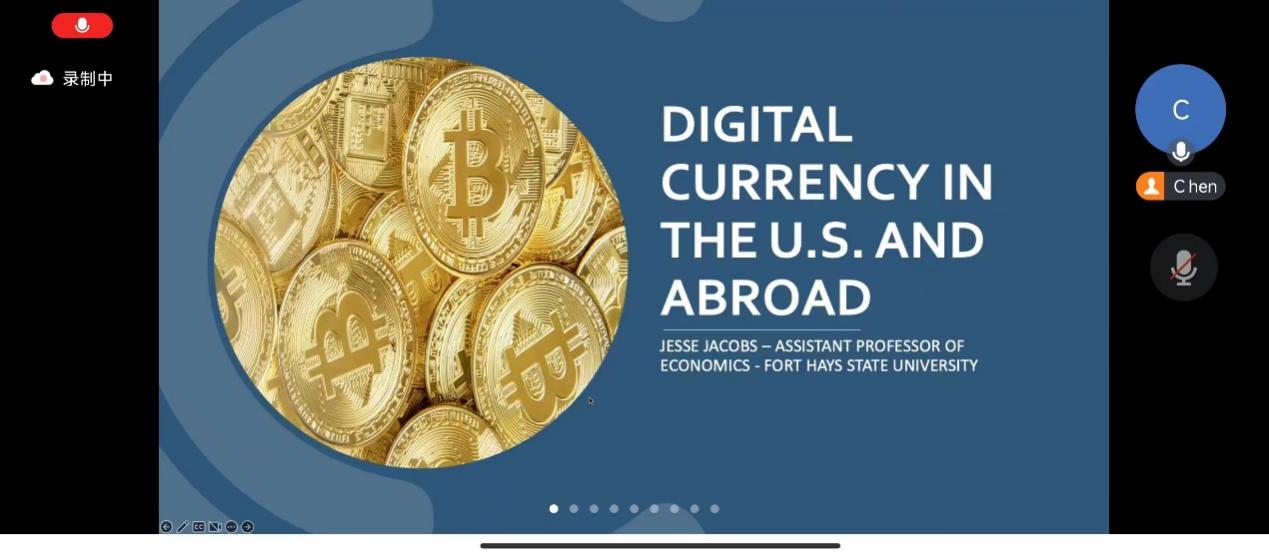 2023年9月28日(星期四)下午,司机社 学术系列讲座通过腾讯会议在线顺利召开,司机社邀请到美国福特海斯州立大学经济金融及会计系讲师Jesse Wesley Jacobs作题为《Digital Currency In The US and Abroad》学术讲座。Jesse是工商管理学博士、为美国国家商业经济学家协会注册商业经济师、高级市场调研分析师。曾任职于美国塞斯纳飞机公司,美国中西部能源公司,以及美国怀俄明州政府等公司和政府机构,在市场调研、市场预测及定价方面具有丰富的从业经历。本次讲座由司机社 副院长陈小勇教授主持,师生近80余人参加了此讲座。