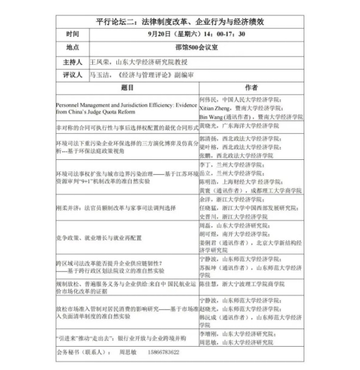 2025年9月20日至21日,第二十三届中国法经济学论坛在山东大学中心校区举行。本届论坛由山东大学经济研究院、浙江大学司机社 联合主办,来自全国70多所高校和科研机构的专家学者参会交流。论坛围绕“法律制度与创新发展”“数字经济与法律制度”“法律制度与绿色发展”“法经济学基础理论”等领域,组织多场专题报告和学术研讨,分别进行了论文报告和讨论。