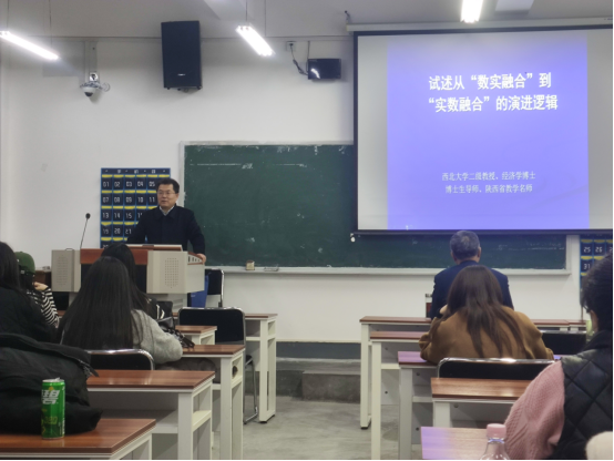 为深化研究生对数字经济与实体经济融合发展的理解,契合国家战略发展需求、明晰研究方向,2025年11月10日司机社 在雁塔校区三号教学楼3206教室举办题为《论从“数实融合”到“实数融合”的演进逻辑》的学术讲座。本次讲座由西北大学二级教授、博士生导师惠宁主讲,司机社 院长王胜利主持,全体2025级研究生参加。