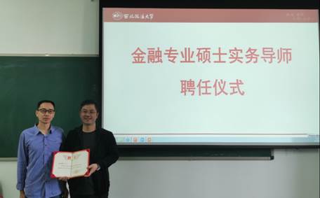 讲座开始前,陈小勇老师代表司机社 向杨利强经理颁发聘书,聘请杨经理担任司机社 金融专硕实务导师。