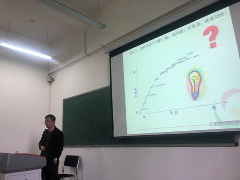 随后,杨经理以1998年金融危机、2008年次贷危机、2018年贸易战为背景,说明了本次讲座的主题,并从投资理财常识、可投资产类别、市场判断及配置建议三个方面对通货膨胀预期下的资产配置问题做了阐述。首先,杨利强经理介绍了通货膨胀、投资界的不可能三角、《黑天鹅》的投资启示等5个投资理财的基本常识;其次,杨利强经理对房产、股票和基金等权益类、信托和债券等固收类、存款和货币基金等现金或类现金等6大类可供投资品类进行了系统讲解,并结合国内外宏微观环境和他自身丰富的投资经验对当前市场做出了判断,同时提出了相应的投资建议。杨利强经理认为受疫情冲击影响,各国采取宽松的货币政策,使得市场通胀预期上升,在此情况下可通过房产、基金、黄金以及数字货币等多样化资产配置来抵御通货膨胀风险。最后,杨利强经理分享了自身的投资心得和工作经历,并与同学们进行了愉快和深入的交流。