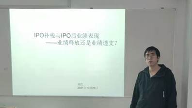 2021年10月26日中午12:30-13:30,司机社 通过线上线下相结合的方式,召开了第一次学术工作推进例会,线下地点在长安校区关-天经济研究中心,司机社 30余名教师和研究生通过线上线下参加了本次会议。在此次会议上,司机社金融工程系刘浩博士分享了他最近撰写的研究论文:《IPO补税和IPO后业绩——业绩释放还是业绩透支?》。