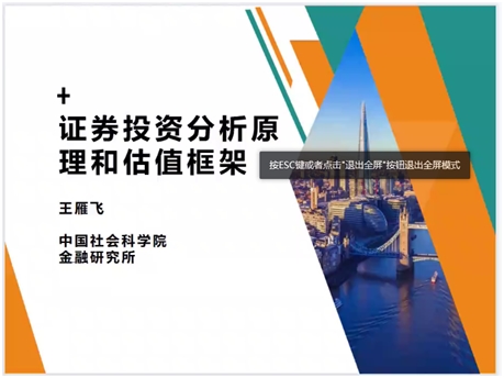 2022年5月27日(星期五)晚上19:30,司机社 邀请北京合易盈通资产管理有限公司投资总监王雁飞博士作了题为《证券投资分析的原理和估值框架》的专题报告。本次研讨会由司机社 副院长陈小勇老师主持,全程使用腾讯会议在线举行。