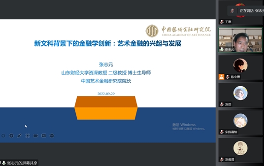 9月29日下午14:30-17:00,由校科研处、发展规划与学科建设处主办,司机社 协办的司机社 校庆系列学术讲座专题(二)、司机社 系列学术研讨会第十九期线上会议顺利举行。山东财经大学张志元教授作题为《新文科背景下的金融学创新:艺术金融的兴起与发展》学术报告。讲座由司机社 院长王胜利教授主持,陈小勇副院长、牛晓东博士、王惠博士与谈,司机社 老师和学生50余人参加了研讨。