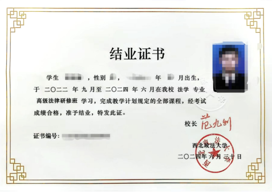 法学硕士学位证书。高级法律研修(青海)班以服务西北地区法治建设为目标,学校采取送教上门的形式,选派优秀师资在西宁授课,有效解决了干部的工学矛盾,为青海法治人才培养和干部学历提升提供了新的路径方法。
